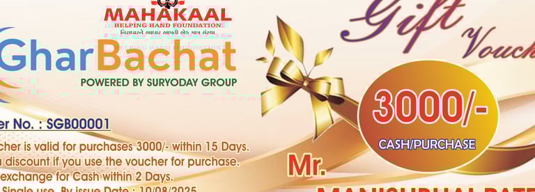 5. Redemable at participating Ghar Bachat Stores and online Present this voucher at the time of billing.