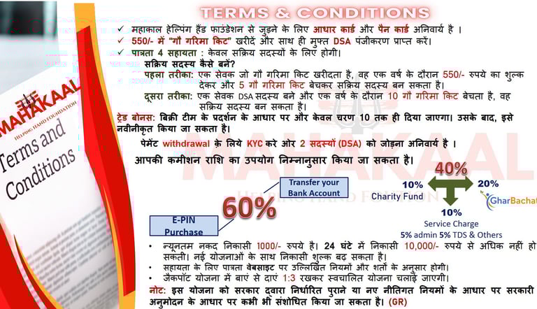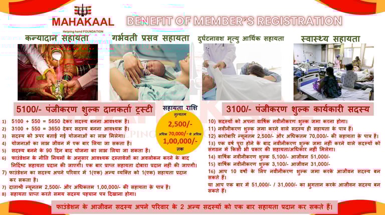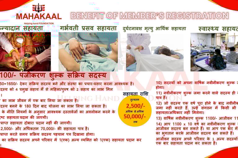 •Aadhaar card and PAN card are mandatory to join Mahakaal Helping Hand Foundation.